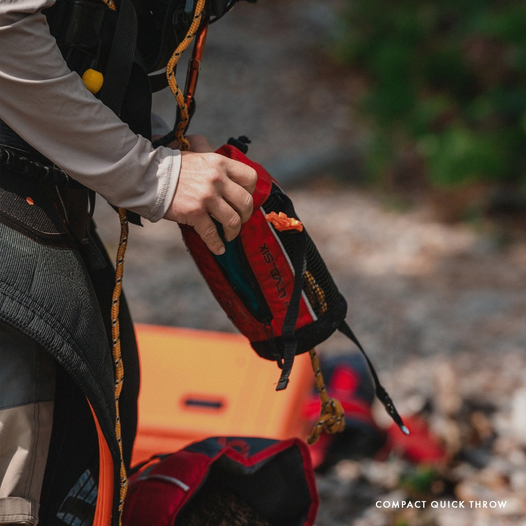 he Compact Quick Throw is a small throw bag designed for quick deployment in the case of an emergency. The Compact Quick Throw features tougher 16 M 5/16" dynamic rope with a 24% stretch threshold and boasts a 320KG breaking strength. The mesh panels allow quick draining and drying, and the gusseted opening system makes re-packing your throw bag quick and easy.